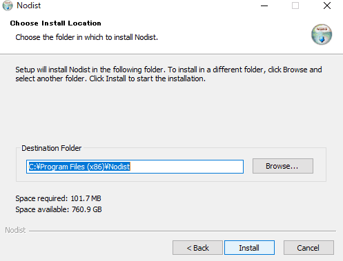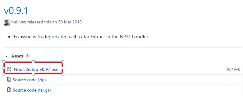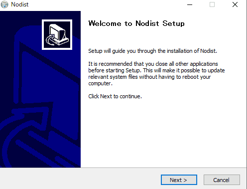 NodistSetup-v0.9.1.exeをダウンロードします。