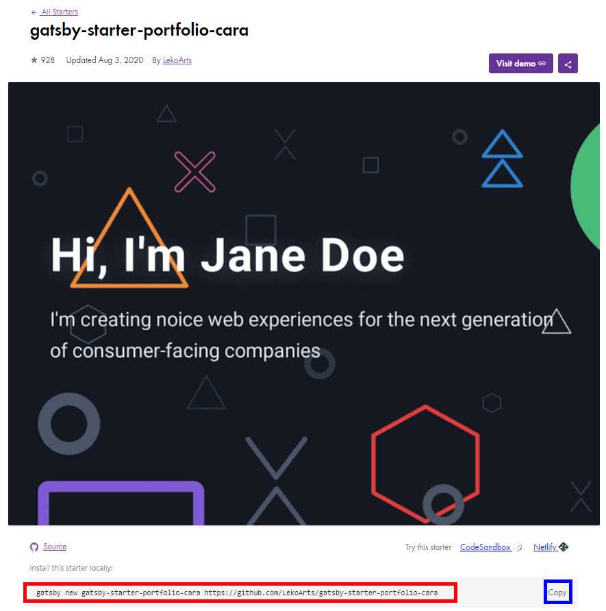 gatsby new gatsby-starter-portfolio-cara https://github.com/LekoArts/gatsby-starter-portfolio-cara