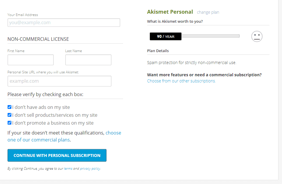 WordPress をインストールすると最初からインストールされている Akismet ですが、無料の範囲内でできるとこまで設定します。