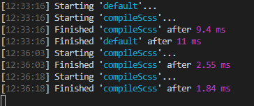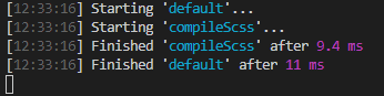 exports.default = series(compileScss)上記コードを実行した結果が下記の通りです。