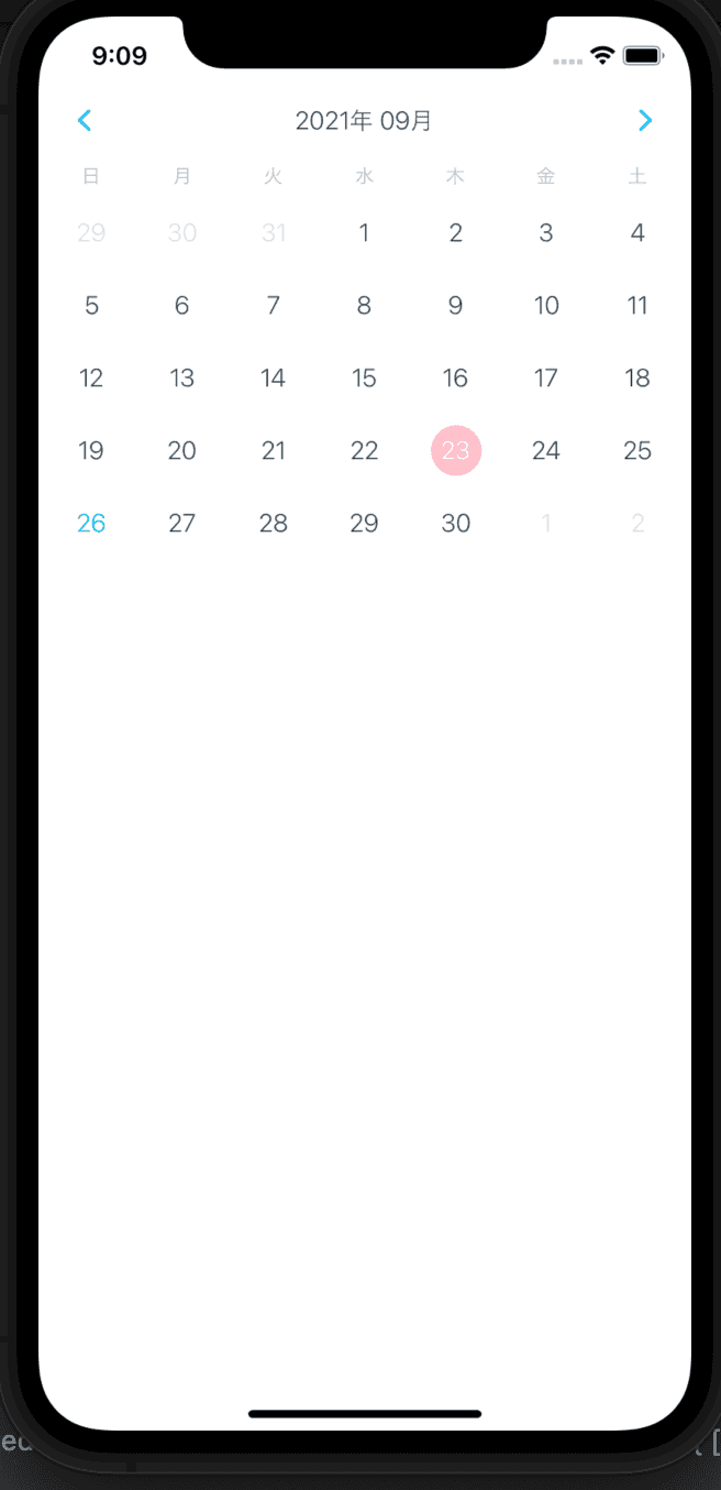 react-native-calendars の日付のフォーマットが**'2021-09-26'**なので moment.js で初期化しています。