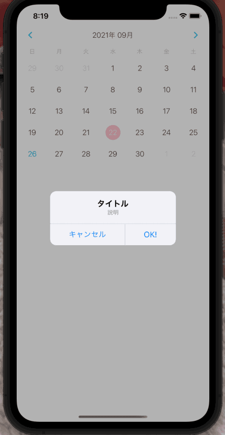 日付を選択するとダイアログが表示する機能の実装ができました。
